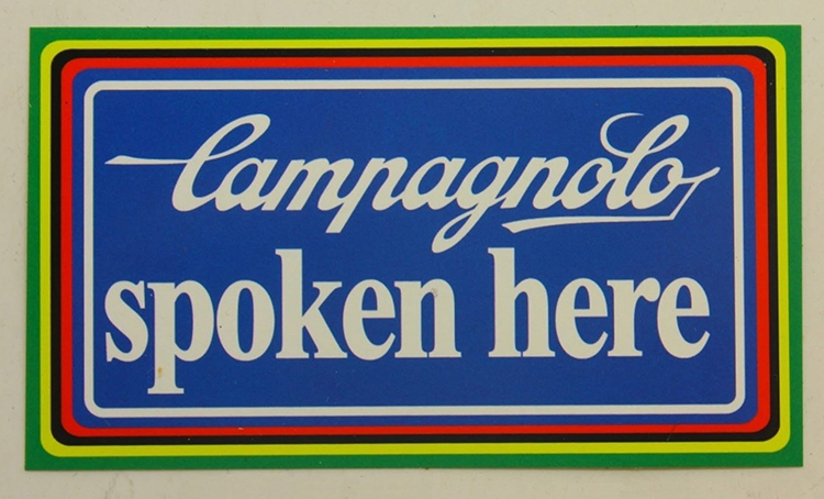 In the 1980s Campagnolo came out with this as a metal shop sign. Later, because of its popularity, it also published cardboard versions.